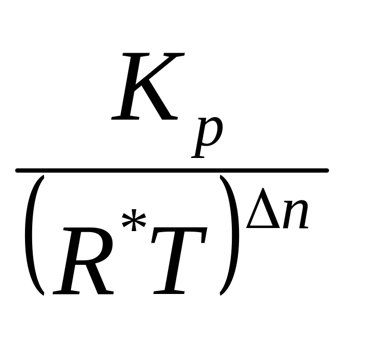 Связь между Кр и Кс: Кр = Кс(R*T)∆n (где ∆n =(e+f) – (a+b) - изменение числа молей газов в результате реакции; R* = 0,082 атм.л.моль-1.К-1 ) .