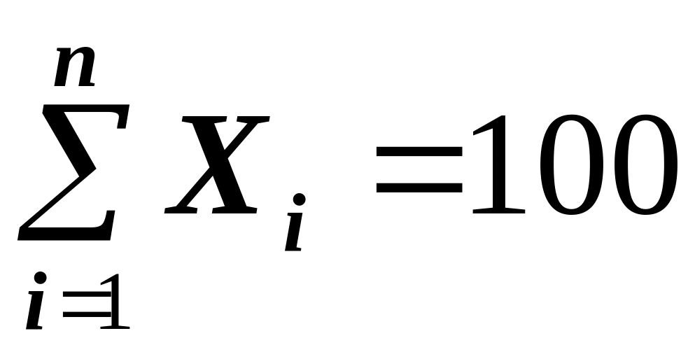Таким образом, если известны четыре величины, пятое значение уже не свободно, поскольку сумма должна быть равна 100. Например, если нам известны величины 18, 24,19 и 16, пятая величина должна быть равной 23, поскольку сумма равна 100.