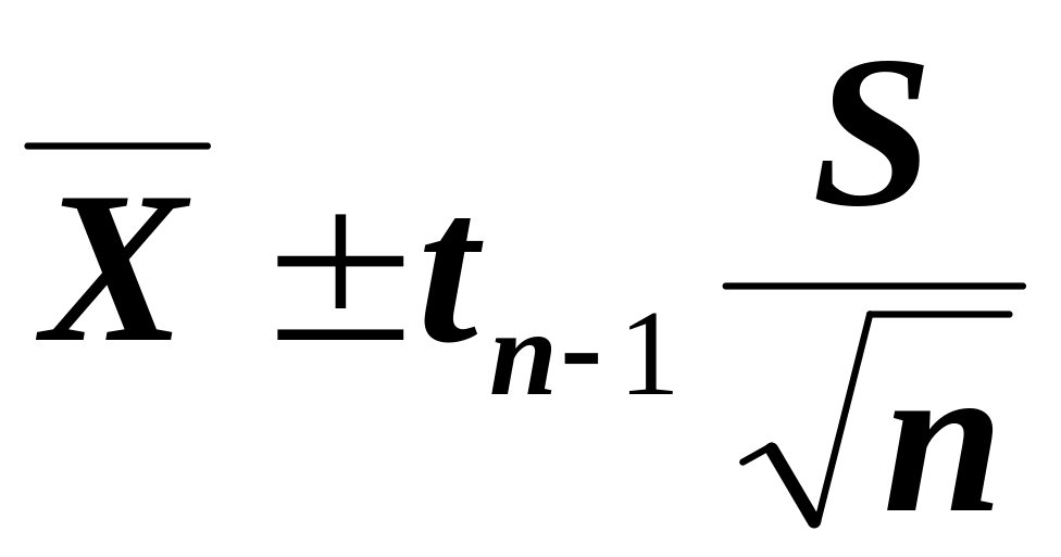 Рассмотрим формулу для вычисления интервала, содержащего математическое ожидание при неизвестном стандартном отклонении с вероятностью (1-α)×100%.