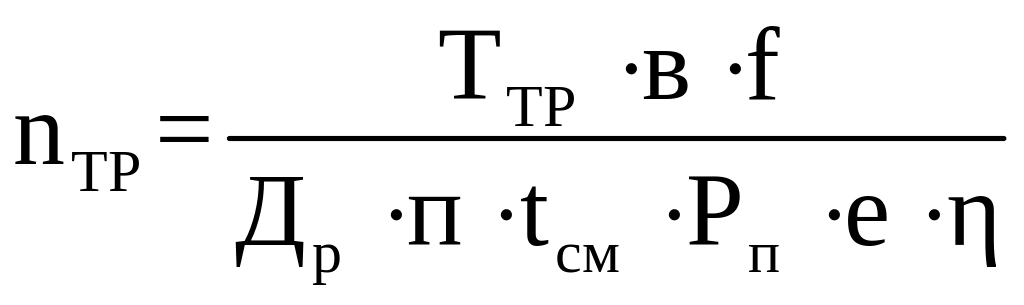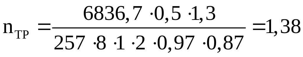 Количество станков, необходимых для выполнения плана ремонта, определяется отношением годовой трудоемкости станочных робот ТСР (60% общей трудоемкости) к действительному годовому фонду оборудования Фд[стр 18 ,1]: