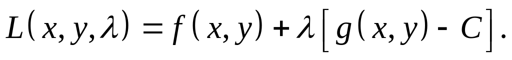 Точка называется точкой условного максимума (минимума) функции z = f(x, у), при условии g(x, у) = С, если существует такая окрестность этой точки, что во всех точках (х, у) из этой окрестности, удовлетворяющих условию g(x, у) = С, выполняется неравенство