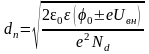 Объединив эти результаты, получим зависимость толщины приконтактного слоя в полупроводнике от внешней разности потенциалов