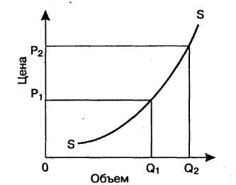 Кривая предложения показывает прямо-пропорциональную связь между ценой и количеством товара, и выражает закон предложения.