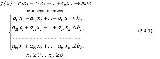 Задача условной оптимизации (2.3.7) называется задачей линейного программирования (ЛП), если целевая функция и все функции ограничений являются линейными функциями: