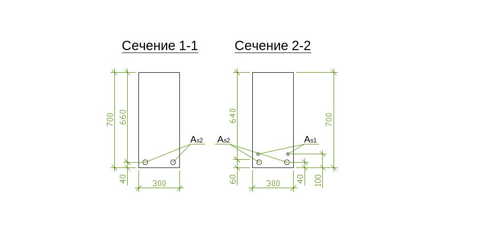 Поперечные сечения ригеля 1–1 и 2–2 (см. рис. 4) показаны на рисунке 5: