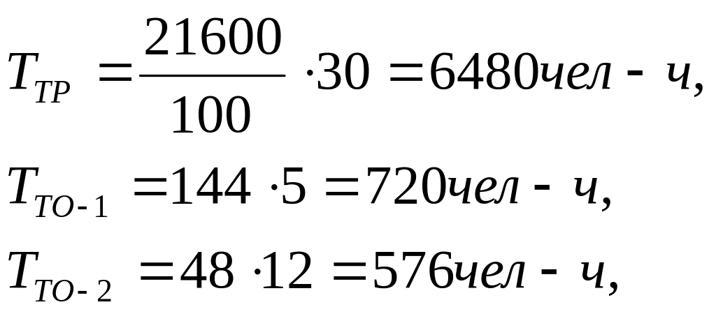 Подставляя значения из /1/ и /4/ в формулы: 1.1, 1.2,1.4,1.5,1.8,1.9,1.10, учитываем, что ТО-3 для автомобилей не проводится, тогда получим: