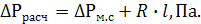 Определяем суммарные потери давления на участке: