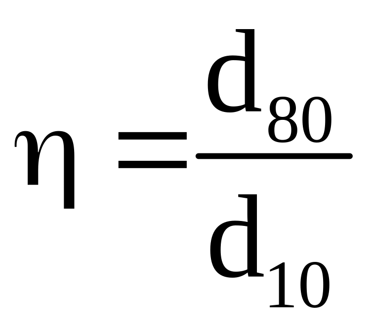 где d80 и d10 − диаметры отверстий сит, через которые проходят 80 и 10% зерен образца.
