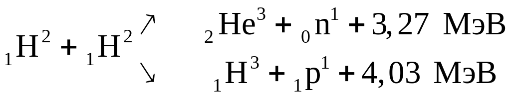 Из реакций синтеза легких ядер для осуществления управляемого термоядерного синтеза особый интерес представляют две реакции: