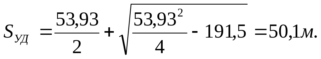 Решив уравнение, получим удаление Sуд автомобиля, совершившего наезд, от места наезда в момент, когда автомобиль-препятствие уже не ограничивал видимость пешехода.