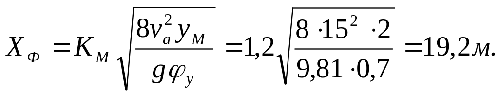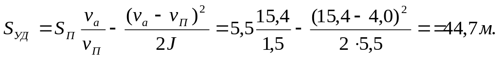 7. Удаление автомобиля от места наезда - по формулам (8.33) и (8.28).