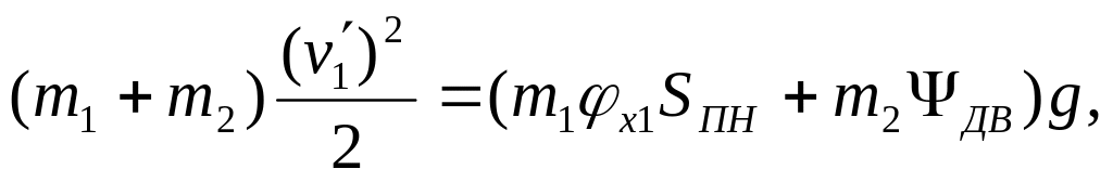 б) оба автомобиля заторможены, после удара перемещаются совместно на расстояние Sпн с начальной скоростью v1/.