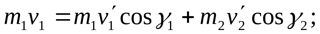 Все количество движения системы можно разложить на две составляющие в соответствии с первоначальным направлением движения автомобилей 1 и 2. Поскольку количество движения в каждом из указанных направлений не изменится, то