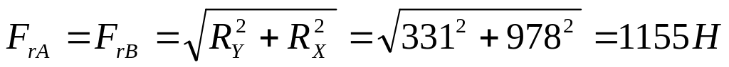 Определение суммарных радиальных реакций, Н: