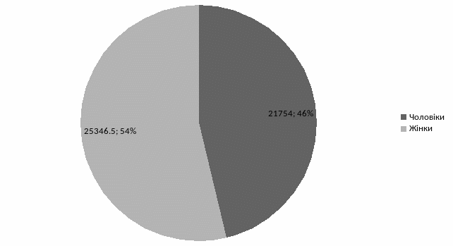 Рисунок 1.3 – Структура постійного населення України за статевою ознакою за 2001 рік.
