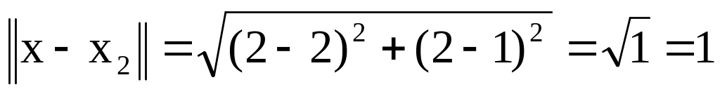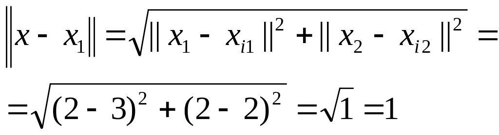 2. Заданы функции активации двух формальных нейронов скрытого слоя RBF-сети в виде радиальных базисных функций с центрами x1=( x1=3, x2=2)T и x2=( x1=2, x2=1)T, σ=1