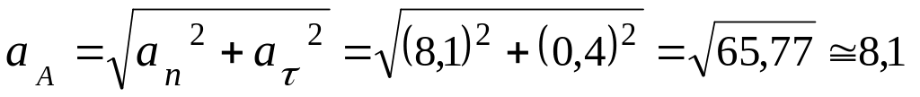 Вычислим ускорение в точке А (рис. 2.4, б):