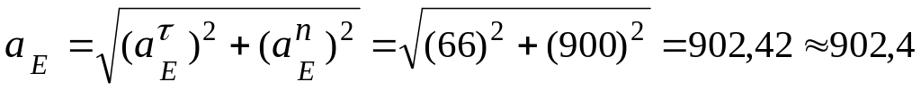 Точка Е находится на ободе барабана 4, который совершает вращательное движение. Тогда, аналогично точке С, ускорение точки Е: