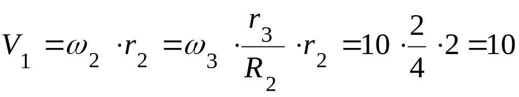 Векторы скоростей точек строятся перпендикулярно соответствующим радиусам дисков и барабана в направлении их угловых скоростей (рис. 2.6).
