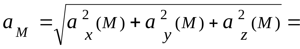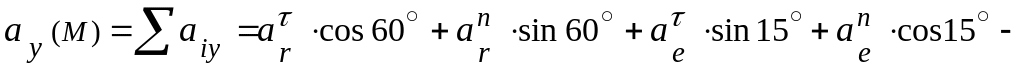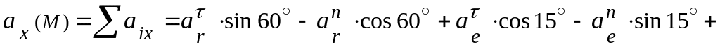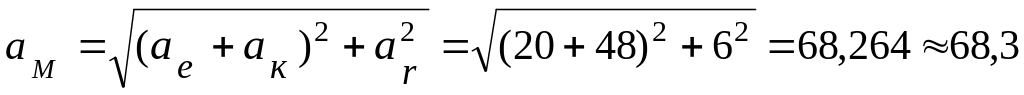 Плоскости относительного и переносного движения взаимно перпендикулярны, тогда абсолютное ускорение точки М рассчитывается по формуле: