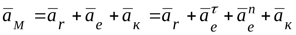 Абсолютное ускорение. Абсолютное ускорение точки является векторной суммой трех ускорений: относительного, переносного и ускорения Кориолиса: