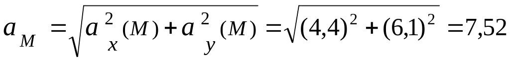 по вычисленным проекциям абсолютной скорости и абсолютного ускорения находим искомую абсолютную скорость и абсолютное ускорение по модулю и направлению.
