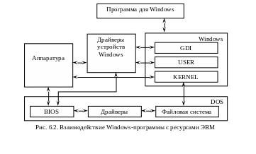 Схема взаимодействия программы для Windows с ресурсами компьютера приведена на рисунке 6.2.