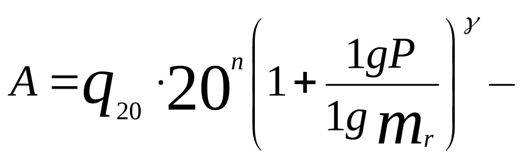 Интенсивность дождя, л/с на 1 га, для данной местности продолжительностью 20 мин при Р = 1 год, q20=60;