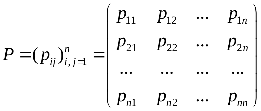 Запишемо перехідну ймовірність Марковського ланцюга у вигляді квадратної матриці -го порядку