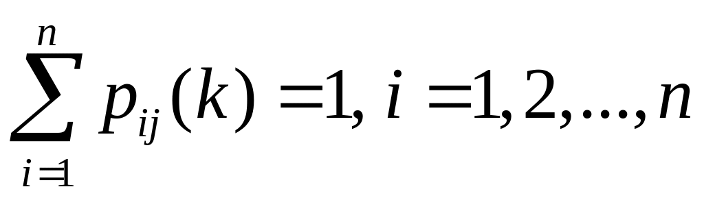 Тобто сума елементів кожного рядка матриці перехідних ймовірностей дорівнює 1.