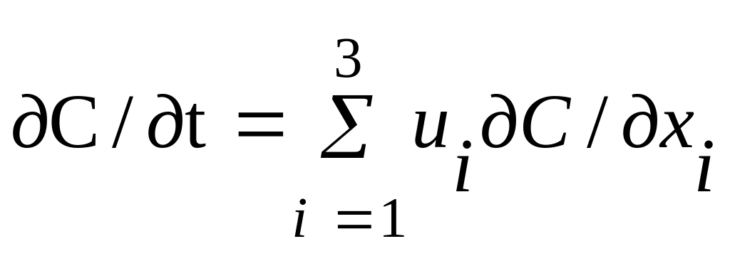 где С – концентрация примеси; ui - компоненты скорости перемещения воздуха по координатам; xi –координаты
