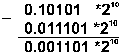 Пример 2. Выполнить вычитание двоичных нормализованных чисел 0.10101 . 210 и 0.11101 . 21. Разность порядков уменьшаемого и вычитаемого здесь равна единице, поэтому перед вычитанием мантисса второго числа сдвигается на один разряд вправо: