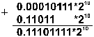 Пример 1. Сложить двоичные нормализованные числа 0.10111 . 2-1 и 0.11011 . 210. Разность порядков слагаемых здесь равна трем, поэтому перед сложением мантисса первого числа сдвигается на три разряда вправо: