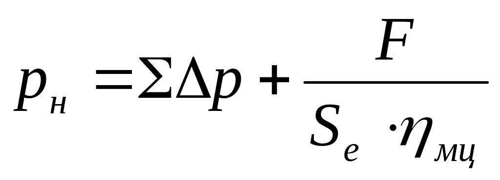 Необхідний тиск насоса рн обчислюємо за рівнянням