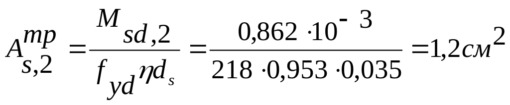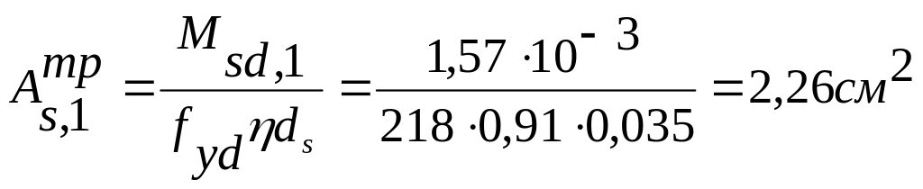 Определяем требуемую площадь арматуры класса S240, fyd=218МПа: