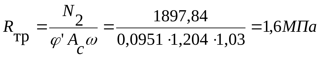 Принимаем марку раствора М10 с расчетным сопротивлением кладки сжатию R=1,3МПа.