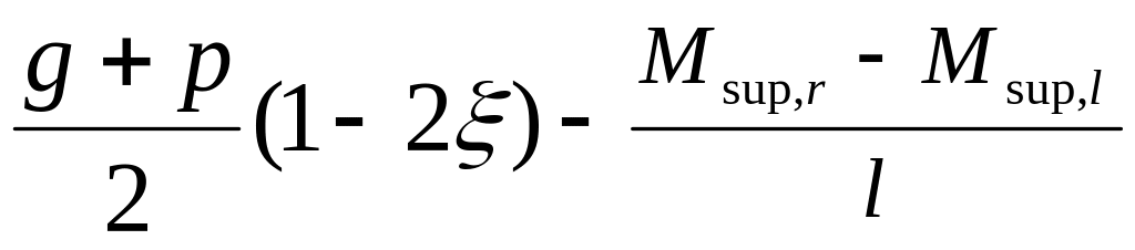 где Msup,l и Msup,r – значения моментов по абсолютной величине на левой и правой опорах с учетом перераспределения моментов; ξ=x/l – относительное расстояние, x – расстояние от левой опоры до расчетного сечения.