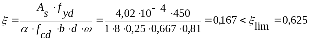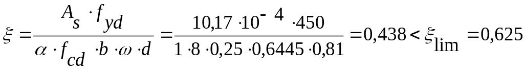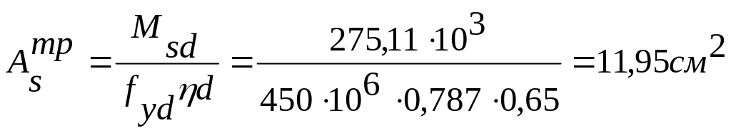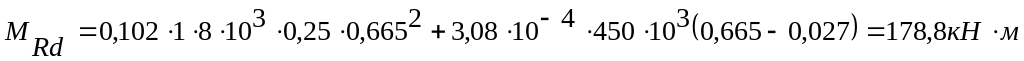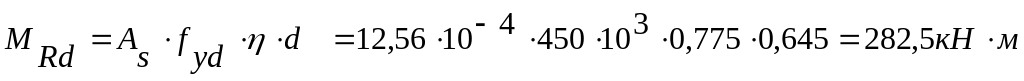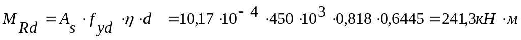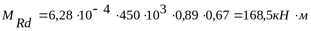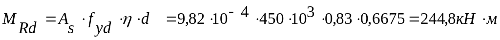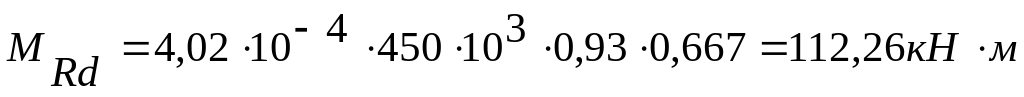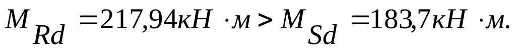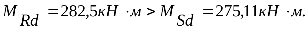 После назначения сечения арматуры выполняем проверку расчета, т.е. определяем несущую способность сечения MRd и сравниваем ее с действующим изгибающим моментом MSd.