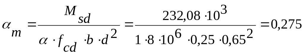 Первый пролет. Нижняя арматура, Msd=232,08 кНм.