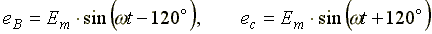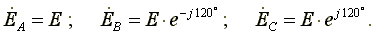 Трехфазный генератор представляет собой синхронную машину. На статоре генератора размещена обмотка, состоящая из трех частей или фаз, пространственно смещенных относительно друг друга на 120o. В фазах генератора индуктируется симметричная трехфазная система ЭДС, в которой электродвижущие силы одинаковы по амплитуде и различаются по фазе на 120o. Запишем мгновенные значения и комплексы действующих значений ЭДС.