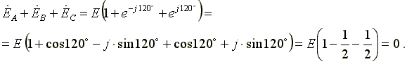 Сумма электродвижущих сил симметричной трехфазной системы в любой момент времени равна нулю.