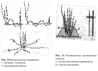 Способы отводкового размножения: укладка крупных деревьев, отведение побегов раскладкой, отведение побегов в канавки, воздушные отводки, окучивание поросли,