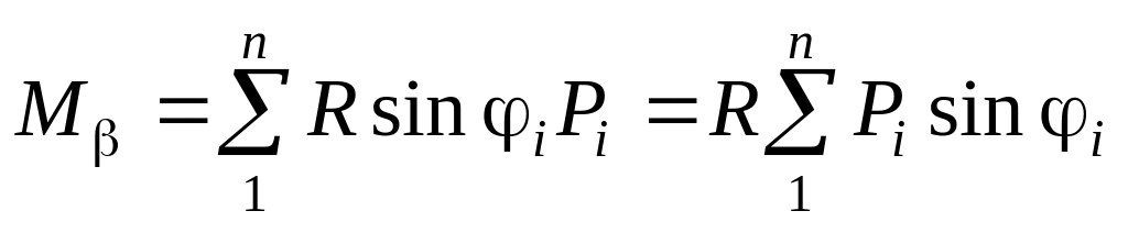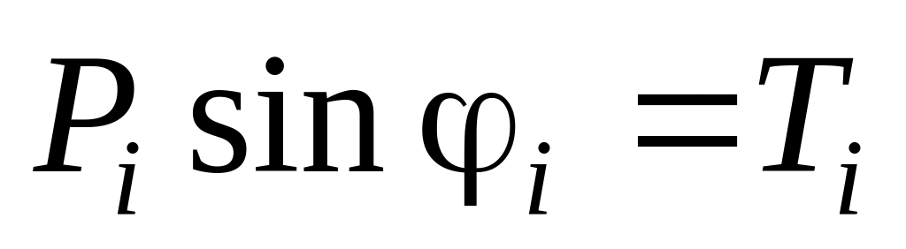 Как видно из рис.46, ai = Rsini, где R – радиус круглоцилиндрической поверхности; ai – плечо силы Pi (горизонтальное расстояние между центром тяжести отдельных блоков и точкой О); i – угол наклона поверхности скольжения в точке, лежащей на одной вертикали с центром тяжести элементарного блока.