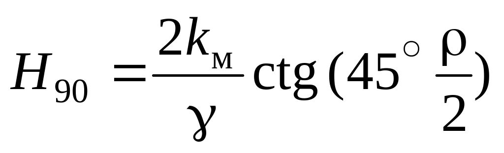 где – угол трения, kм – сцепление в массиве, – удельный вес породы;