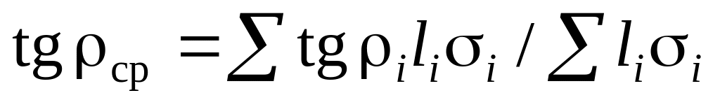 Если уступ (борт) карьера и отвала сложен слоями пород с различными показателями сдвига, то вычисляют средние весовые характеристики сопротивления сдвига пород по поверхности скольжения: