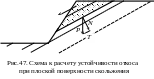 При плоской поверхности скольжения (рис.47) коэффициент запаса устойчивости откоса определяют по формуле: