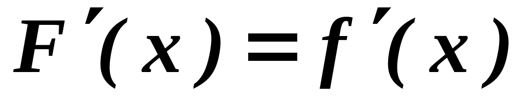 Функция F(x) является первообразной для функции f(x) в некотором промежутке, если в любой точке этого промежутка выполняется: