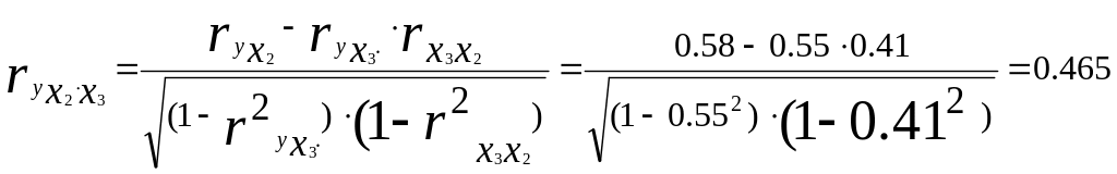 Т. е. при закреплении фактора x3 на постоянном уровне влияние на у фактора x2 оказалось несколько менее сильным (0,465 против 0,58);