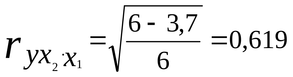 Соответственно при i=2 и двух факторах частный коэффициент корреляции у с фактором x2 можно определить по формуле