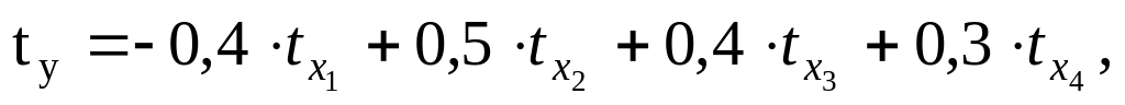 Т. е. при закреплении фактора x3 на постоянном уровне влияние фактора x1 на y несколько снизилось по сравнению с парой корреляцией (0,574 против 0,69 ) ввиду некоторой связи факторов x1 и x3 ;